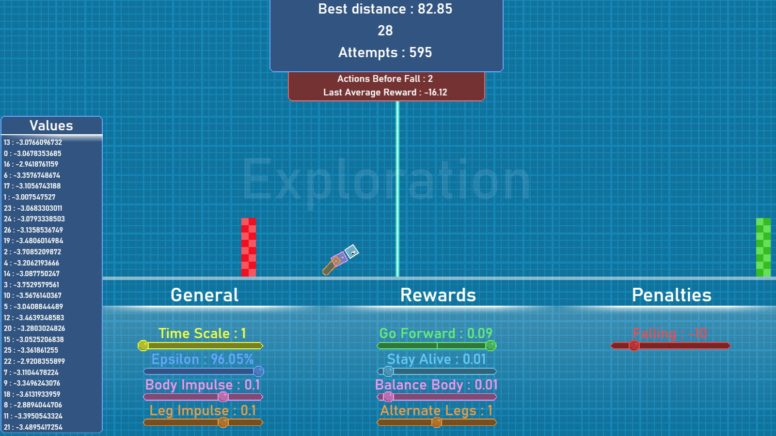 - Falling retire des points lors de la chute de l'agent. Plus sa valeur est élevée, plus la chute sera punitive.